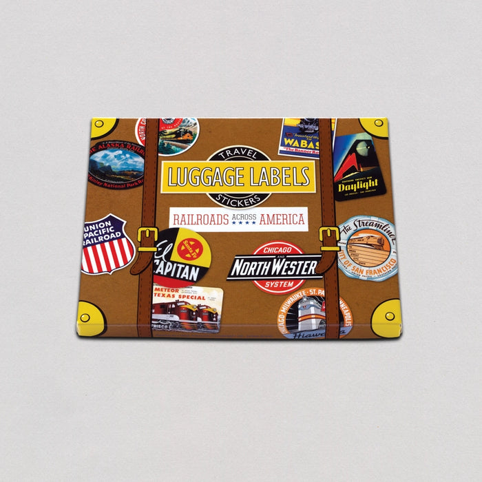 In a way the history of the railroad in the U.S. is a history of 19th and 20th century America. The railroad joined one coast to another, bridged the gap between rural and urban, and moved goods and people at a high rate of speed. Travel labels were created around the middle of the 19th century, to identify trunks on ocean liners and direct them to their staterooms. Eventually the custom expanded to trains, hotels and eventually airplanes, and travel companies realized the labels’ marketing potential. Travel labels are widely collected for their design and historical interest.