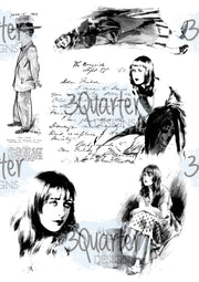 This set includes 12x A5 sheets of designs printed in black and white and printed onto Vellum. Perfect for cards, scrapbooking, art journaling, mixed media and off the page projects.