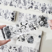 Petal Ponder PET Tape – where vintage vibes meet modern flair! Get ready to immerse yourself in a world of timeless elegance with our black and white tape set, featuring a charming assortment of florals that will transport you to a bygone era.