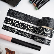 Glow-in-the-Dark Washi Tape Set (3 rolls) – Spiderwebs, bats, and branches that shine after dark