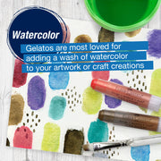 Gelatos work beautifully when used to tint gesso, whipped spackle, and other mediums, or when applied directly to paper and blended out for soft, radiant effects. This Metallics set includes 12 shimmery tints that are odorless and acid-free, ideal for art journaling, collage, scrapbooking, card making, and mixed-media work.