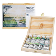This wooden box set contains all 5, 15ml tubes of Schmincke Horadam Super Granulating watercolours in the Galaxy colour range. The colours included are Shire Yellow, Shire Olive, Shire Green, Shire Blue, and Shire Gray.