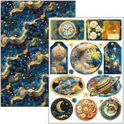 An enchanting journey through stars, planets, and cosmic symbols comes to life in this extraordinary collection, where art and mystery intertwine in perfect harmony. Deep shades of blue blend with golden details, creating evocative atmospheres inspired by the universe and its infinite beauty. Ethereal figures, glowing constellations, and astrological motifs combine in elegant and captivating compositions, transporting the viewer into a dreamlike and timeless dimension. Ideal for those who love the mystery of the cosmos and the magic of infinity, this collection is an invitation to lose yourself in the wonders of the universe.