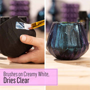 Add a touch of show-stopping sheen to your DIY projects with the lustrous color of FolkArt Dragonfly Glaze. Designed as a top coat, this iridescent glaze has extraordinary light-reflective pigments to create a beautiful iridescent, gloss finish. In light, this shimmering coating allows multiple colors to be viewed from different angles. Each color brushes on creamy, white, but dries clear. Layer over dark or light base colors to create an intense, shimmering finish that makes an impact on a variety of surfaces. This glittery top coat has a multi-surface formula that can be used on several surfaces including wood, metal, terra cotta, canvas, paper, and more. This glaze is also great for indoor and outdoor projects. Whether you are a novice or expert crafter, you'll love the versatility and shine of this premium acrylic paint top coat as part of your arts and crafts supplies.