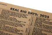 The front includes tear-off pages from November 2024 all the way through January 2026. On the back you’ll find a huge, sort-of-comprehensive, list of “Real Big Days” throughout the year.