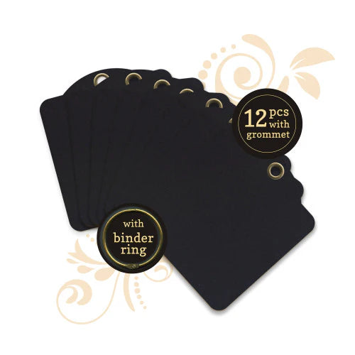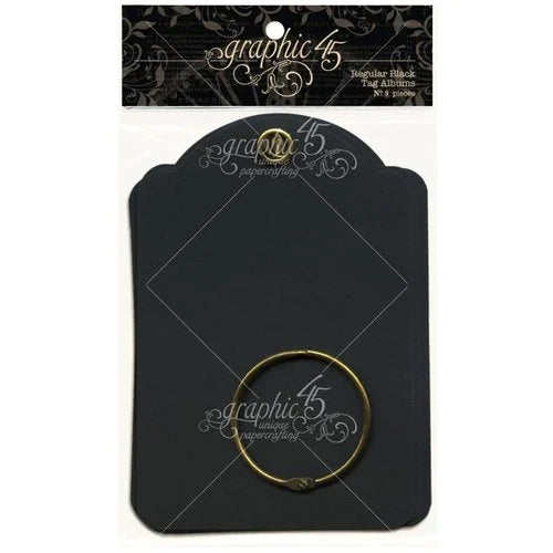 Graphic 45Regular Tag Album, Black Nine tags feature a sturdy card with a grommet Including a matching binder ring Tag measurements: 5.75 in x 3.875 in
