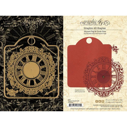 Graphic 45Create layered tags and vintage-inspired accents with the Square Tag & Clock Dies set. This versatile collection includes 8 precision thin meta...