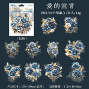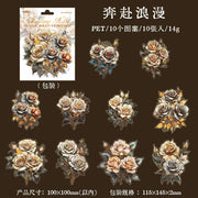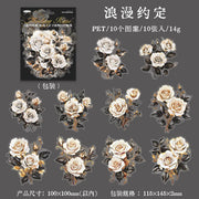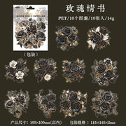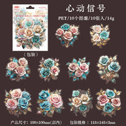 Large-scale vintage-style PET rose stickers in various colors. Perfect for junk journals, scrapbooks, or other paper crafts. 10 stickers in each pack.