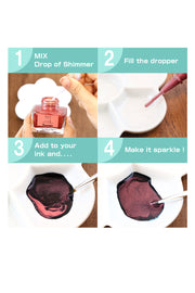Drop of Shimmer ink is designed to make any of your drawing ink sparkle and shine. Simply add a drop and watch the magic happen. Use with a glass pen, dip pen, or brush. Not for use in fountain pens. Mix well before use.