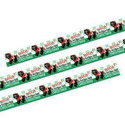 Package wrappers rejoice! No more boring tape. This roll is 49.2 feet in length. This roll features a toy pony with the instruction not to open the package before Christmas. Will look great looped around a box or criss crossed on a wrapped present.