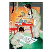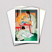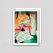 These children are meticulously crafting a delightful snack for Santa Claus on the most magical night of the year. Originally painted by the renowned artist Revere F. Wistehoff and aptly named Merry Christmas Santy, the same words the young boy scribbles in his note, this card carries a timeless charm that ensures a joyous and unforgettable Christmas morning for all who receive it.
