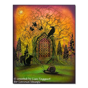 A single stamp featuring an illustration of a door framed by tree trunks.