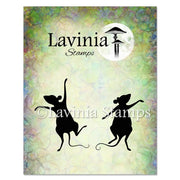 A set of two single silhouette stamps of two dancing mice, Tilly and Tango.