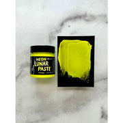 Bring an electrifying glow to your craft projects with Neon Lunar Paste Voltage by Simon Hurley for Ranger Ink. This brilliant neon yellow paste delivers a striking metallic paint-like finish that pops on any surface — especially dramatic on black paper.