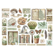 Celebrating the essence and interconnected beauty of nature, the ephemera features an enchanting array of terrariums, delicate foliage, butterflies, insects, shells, feathers, flowers, and potted plants. Whimsical woodland companions—including a fox, squirrel, and hedgehog—add storybook charm, while windows, tags, and even a witch’s hat invite imaginative layering and scene building.