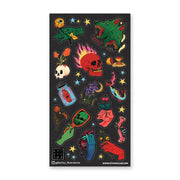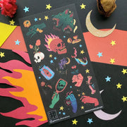 There are all sorts of wonderful and bizarre wonders that exist six feet under. This super fun and colorful sheet from @galactixy_illustrations explores some intriguing possibilities! From a skull ablaze to conjoined canines, embrace the weird and the wonderful with this colorful vivid set.