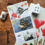 In this beautiful set, @Ivyteas takes us on a journey alongside adventurous mollusks traveling across various seasons and terrains. Similar to sending mail through the post, these hard working little guys venture through snow, rivers, and mountains to reach their destinations. With quaint abodes for shells, wherever they go becomes home.