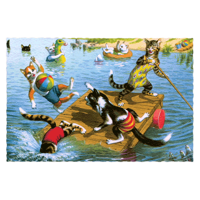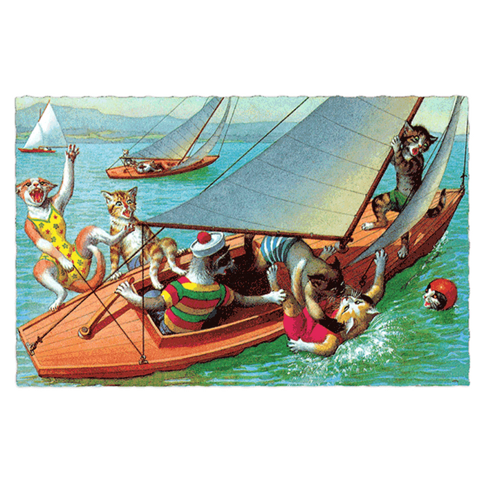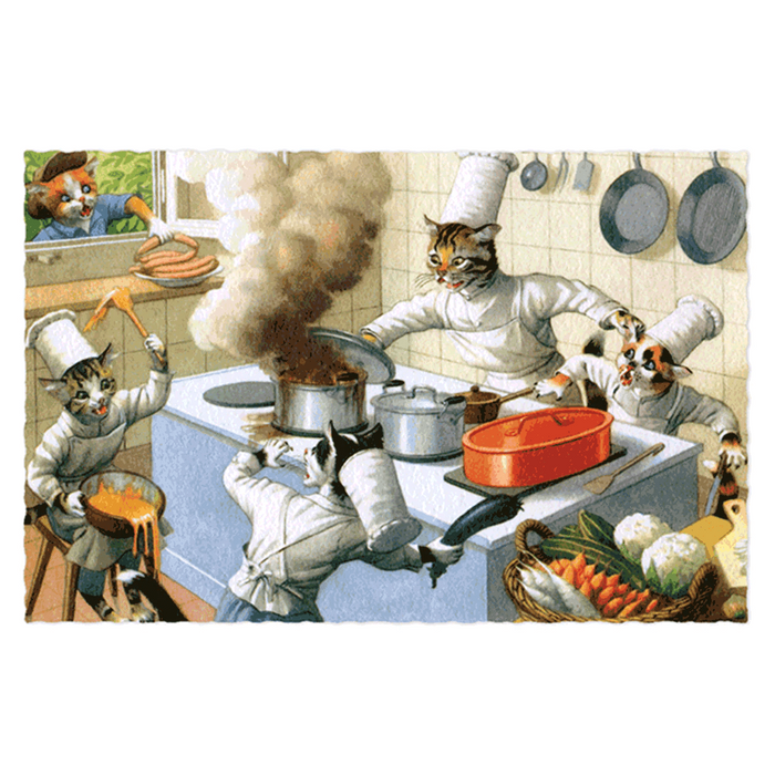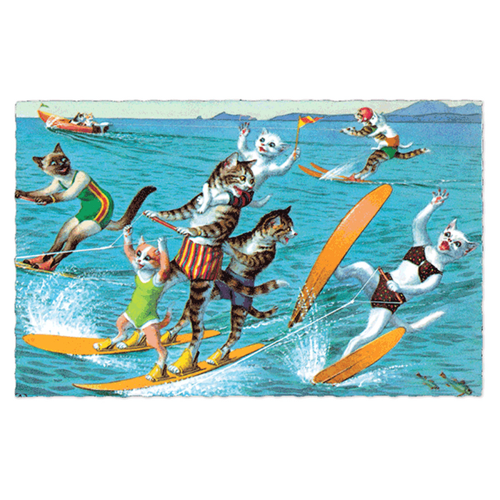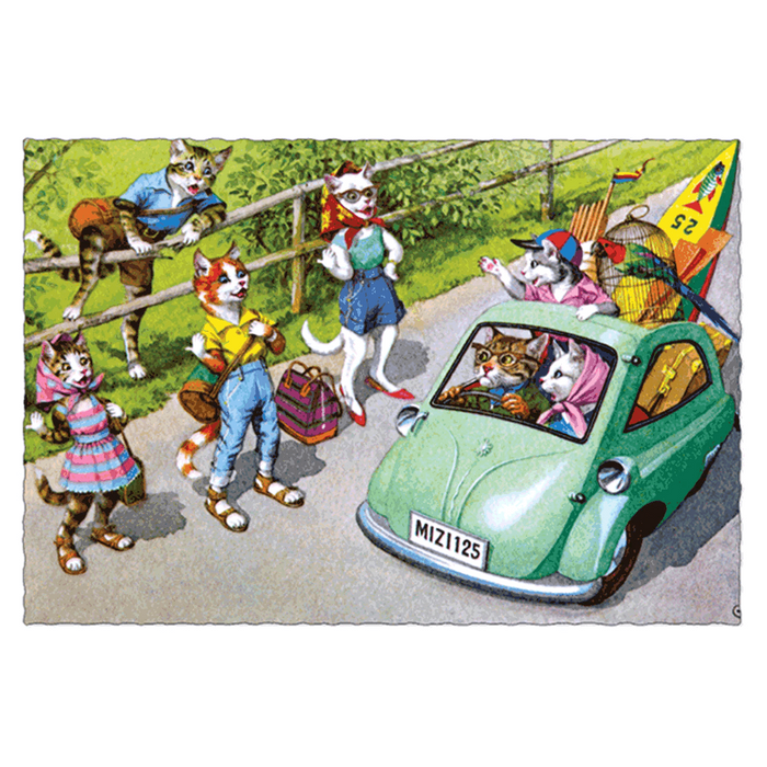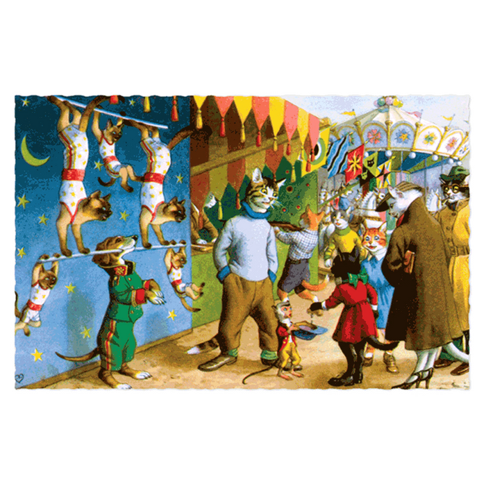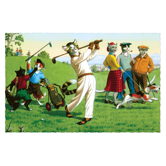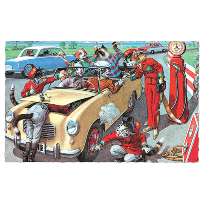 Beginning in the 1940s, illustrations of naturalistically painted cats were published as postcards, all by Swiss artist Eugen Hartung (1897-1973). He created more than two hundred designs. These cats mirror our human activities, and are both satirical and endearing.