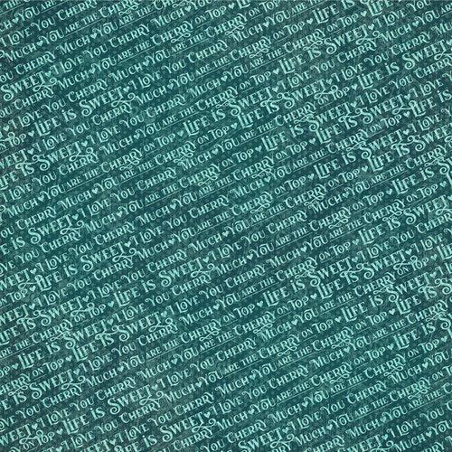 This 12" x 12" double sided paper is part of the Life's A Bowl of Cherries Collection from Graphic 45. The front of this paper features frames, border pieces, and card elements of all shapes and sizes. The reverse side is filled with the phrases Love you Cherry Much, Life is Sweet, and You are the Cherry On Top in diagonal rows, green-on-green, and hearts in between the phrases. This paper can be used on cards, scrapbook pages, tags, and other paper crafting projects. This paper is acid and lignin free. This paper is made in the USA.