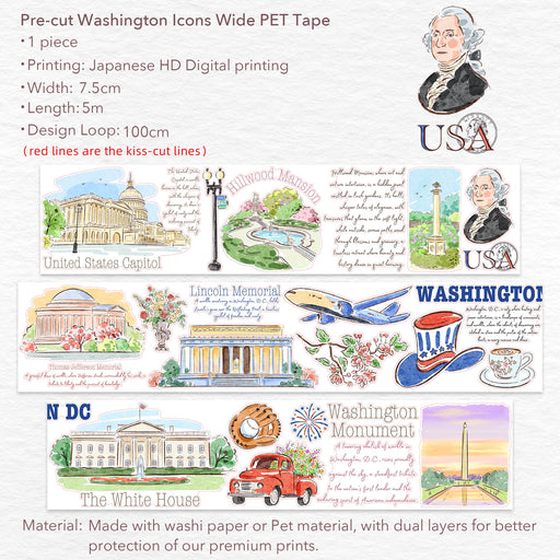 View full detailsThe Washi Tape Shop - Pre-cut Washington Icons Wide PET Tape
