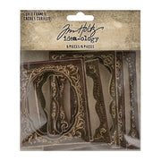 Add a special vintage touch of antique gold to frame anything. This collection of six tarnished, gold printed and embossed baseboard frames come in a variety of shapes and sizes. Use these gorgeous frames to display photos, frame around a word or phrase, highlight an element on a scrapbook page, card, or any other project that needs a glamorous window with intricate detail. Constructed of heavyweight chipboard.