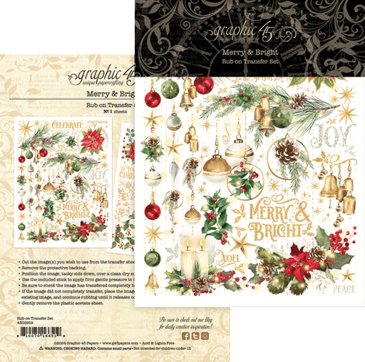 Graphic 45Merry & Bright Rub-On Transfers Two Sheets – 6″ x 8″ easy-to-use rub-on set Seamlessly blends onto any smooth surface Acid & lignin free I...