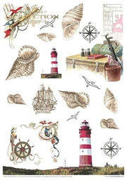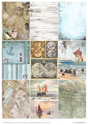 Sea Stories set for mixed media, art journal, decoupage, scrapbooking. Nautical motifs, nautical elements, lighthouse, sailor, ship, sailboat, travel letters, ocean, beach, vacation trip, old maps, shells, fish...