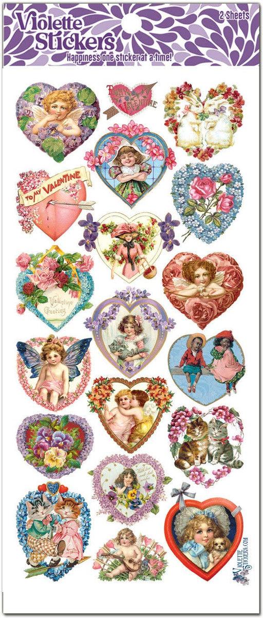 Violette StickersSmall Victorian Valentine heart stickers. 2 sheets of 4" x 8" acid free paper stickers in a clear plastic sleeve.