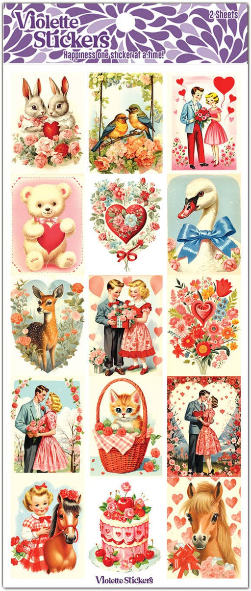 Violette StickersVintage Valentine Images. 2 Sheets of 4" x 8" stickers packaged in a plastic sleeve.
