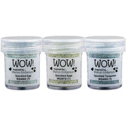 Add gorgeous speckled shine to all your paper crafts with this nature-inspired embossing powder trio Speckled Pearls designed by Marion Emberson! Includes three different embossing powders. Speckled Egg features a soft blend of green, violet, and ebony hues, Speckled Sage combines lime green, green pearl, and ebony tones, and Speckled Turquoise showcases a mix of turquoise, blue pearl, and ebony colors. Use with the WOW! embossing pad (sold separately) to create stunning speckled metallic effects on cards, scrapbook layouts, tags, and more.