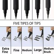 Kuretake Bimoji Fudepens are specially designed to mimic the look and feel of a traditional calligraphy brush. Perfect for hand lettering, coloring or illustration, they feature durable brush nibs that are easy to control and black water-based pigment ink.