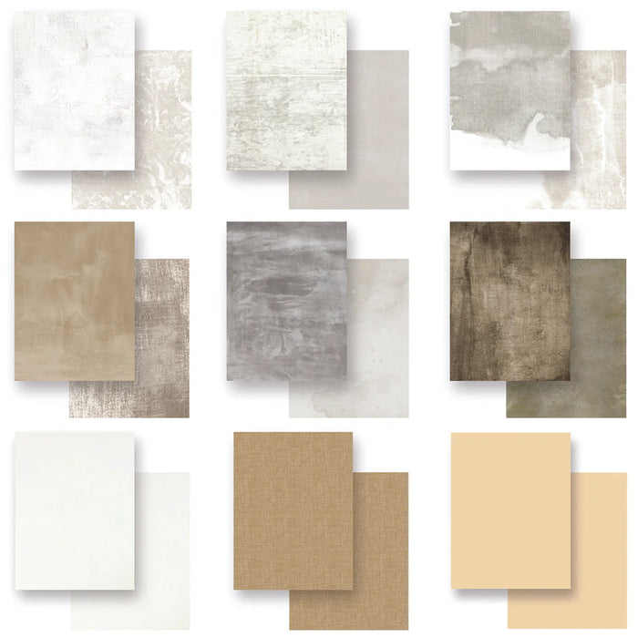 Arden Creative Studio Foundations Paper Pack, designed by Katie Pertiet for the Vintage Makers Collection, is a mixed surface pack containing 12 sheets in total. It includes 4 double-sided designs on 85gsm paper, 2 double-sided designs on 250gsm paper, 2 sheets of 100gsm white vellum, 2 sheets of natural burlap printable paper, and 2 sheets of 85gsm butcher paper. The designs feature neutral, soft colors with watercolor, burlap, and brushed paint effects, making it perfect for journaling, scrapbooking, and cardmaking. Acid and lignin-free, this paper pack ensures a durable, lasting project.