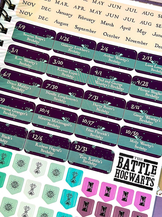 "Time is of the essence!" - we can almost hear Hermione urging us to get to work! Our hardback 7" x 9" planner features 12 undated months, 60 undated weeks, spells and notes in the margins, 5 sticker sheets including character birthday sticker, an elastic strap for closure and a bookmark to keep your place. There are 171 pages to manage your mischief including places to note your potions, trips to the library, important dates, and reminders.