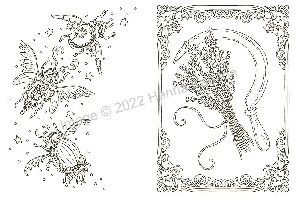 Hanna Karlzon has an art teaching degree from Umeå University and has run her own business as a freelance designer since 2013. Witch’s Cottage is her ninth coloring book. She lives in Umeå, Sweden.
