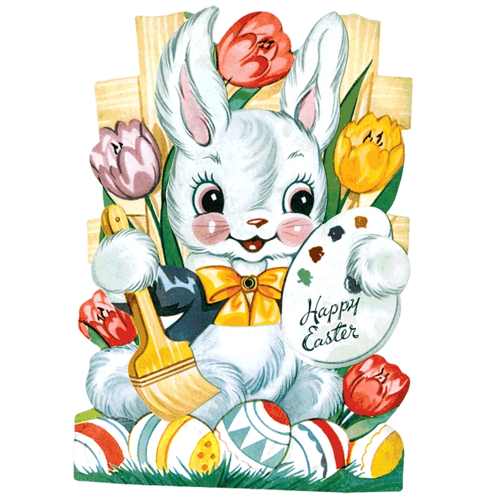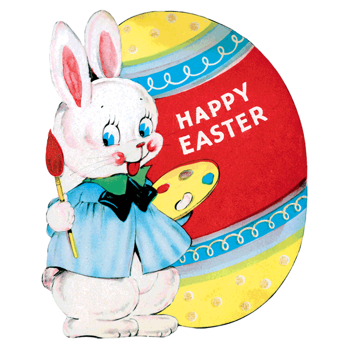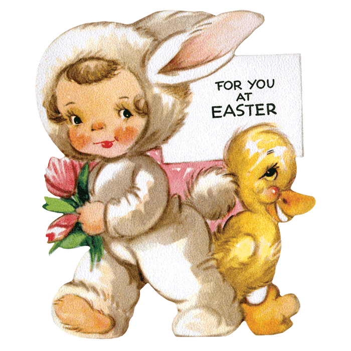 28 Large die cut stickers, boxed. This box conains 28 die-cut stickers suitable for gifts, invitations, decorations, scrapbooking and general Easter crafting. Images include eggs, chicks, flowers, children in springtime attire, and of course the Easter Rabbit in all his glory. Our sources are as varied as our subjects including children’s books, magazine illustrations and covers, calendar art, scraps, decorations, posters, and etc.