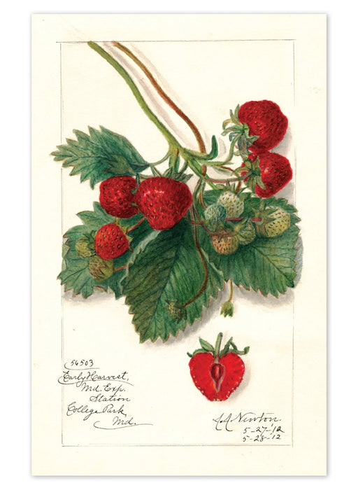 Housed within the Rare and Special Collections of the National Agricultural Library, this historic botanical archive meticulously chronicles the introduction of new fruit and nut varieties by USDA plant explorers from the late 19th to early 20th centuries. Although some pieces lack signatures, historical records attribute the contributions of 21 artists—9 of them women—to this invaluable resource.