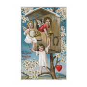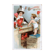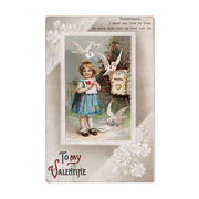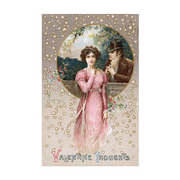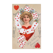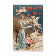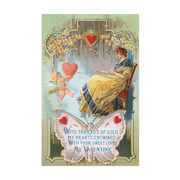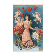 In the enchanting postcards of the late Victorians, we witness the era's preferences in both love and design. The imagery within the this postcard book is predominantly formal, reflecting the Victorians' belief that love was a solemn affair. The depictions include beautiful women, well-groomed children, and classical symbols of February 14th, such as cherubs, ornate hearts, and an abundance of exquisite flowers. This universe is intricately adorned, featuring baroque typography, an abundance of bows and ribbons, and occasional touches of lace. The fusion of Valentine's Day and Victoriana is so harmonious that much of what we recognize as traditional Valentine's Day imagery finds its origin in the Victorian era.