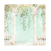 This 12" x 12" double sided paper is part of The Plant Department Collection from Prima Marketing. The front of this paper features what looks like the entrance to a gazebo with vines hanging down. The reverse side is light green with white silhouettes of peacocks and distressed edges on two sides of the paper. There are also faint, distressed white flowers throughout the paper. This paper also features gold foil details. This paper can be used for cards, scrapbook pages, tags, mini albums, journals, and more. This paper is acid and lignin free.