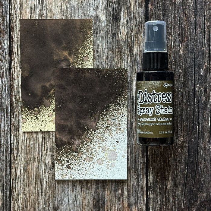 Try out the Scorched Timber Distress Spray Stain designed by Tim Holtz for Ranger Ink! Spray through any stencil or directly onto a porous surface (sold separately). Create a blended effect by layering stain colors and spritzing with water. This Spray Stain coordinates with the other Distress products by Tim Holtz for Ranger Ink (sold separately). Included is one 1.9 fl oz bottle of water-reactive stain.