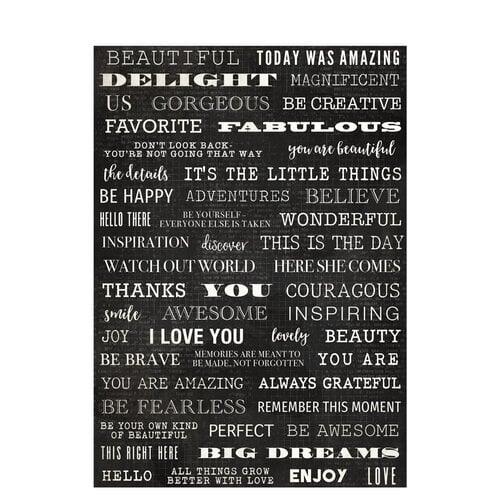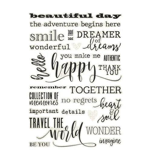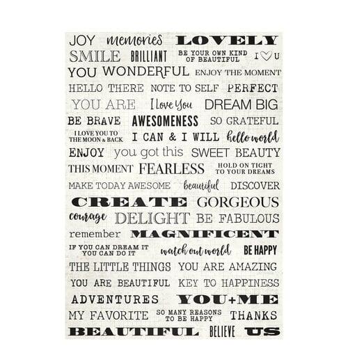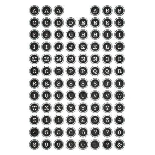 This 12 sheet sticker book is part of the Simple Vintage Essentials Collection from Simple Stories. These sheets include 1300 stickers. There are two pages of typewriter keys with letters, numbers, and a few punctuation marks. There are two pages of the alphabet, in black and white. There are two pages of typewritten words and phrases in black and white. There are two pages of large alphabet, numbers, and punctuation marks in Vintage Black and Vintage Cream. There are also four pages of black and white words and phrases in a variety of fonts. These stickers can be used for cards, scrapbook pages, tags, and other paper crafting projects.