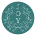 Joy Swag Wax Seal Stamp is from the Sealed for the Holidays Collection. It has one wooden handle that supports a round brass seal stamp design on its end. The design has a vertical JOY in the center surrounded with a clean line floral swag and a bow.