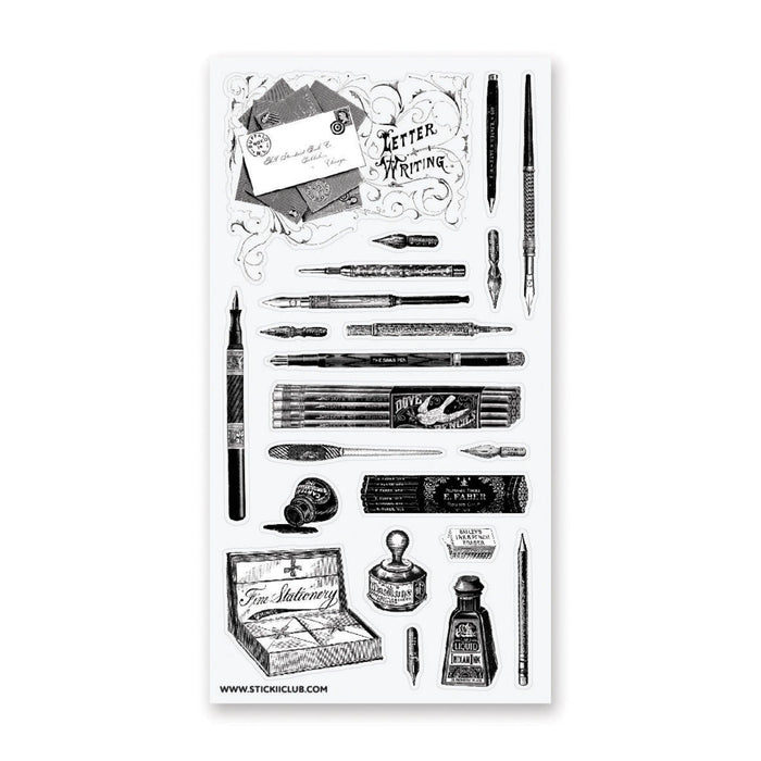 A sticker sheet featuring an antique writing set from our personal collection, available only at STICKII! ✒️📜